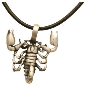 Collier composé d'une cordelette noire en cuir d'un pendentif en étain réprésentant un scorpion - Fermoir mousqueton - Longueur40 cm
