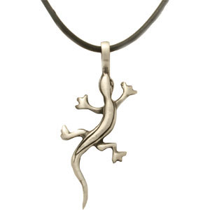 Collier composé d'une cordelette en cuir noir et d'un pendentif en acier réprésentant une salamandre - Sans Nickel