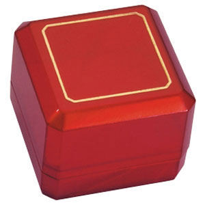 Ecrin pour bague de chez 'Jouailla 1788' (Ref: 702 295) en plastique rouge métallisé liseré doré - Dimensions: 4 x 4 x 3.2 cm - intérieur mousse blanche