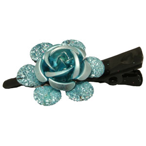 Une pince à cheveux noire pour enfant ornée d'une fleur bleue - Sans Nickel